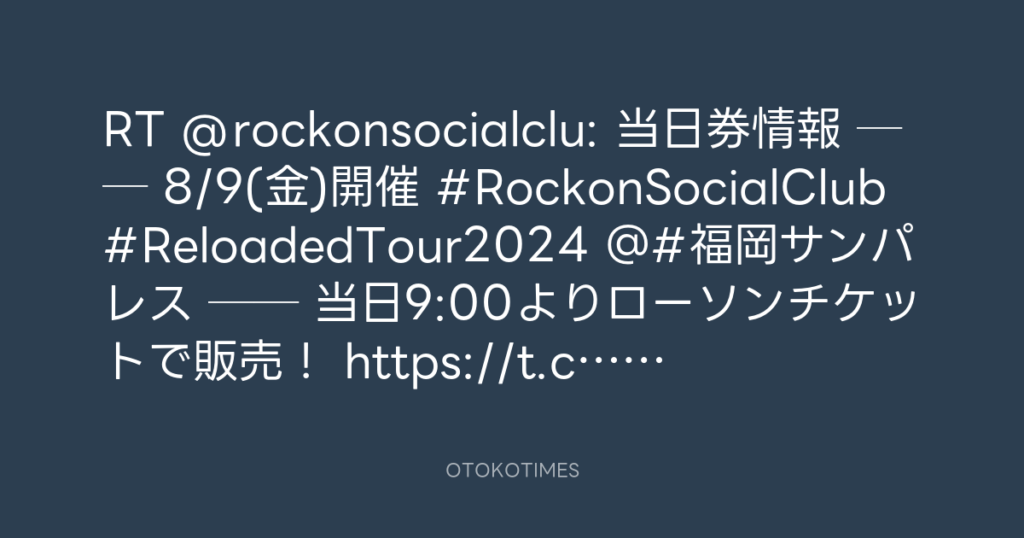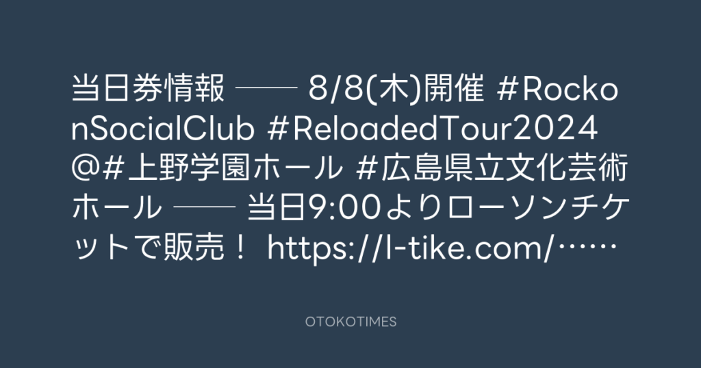 📢当日券情報🎫 🎸── 8/9(金)開催🔥 #RockonSocialClub #ReloadedTour2024 @#福岡... -