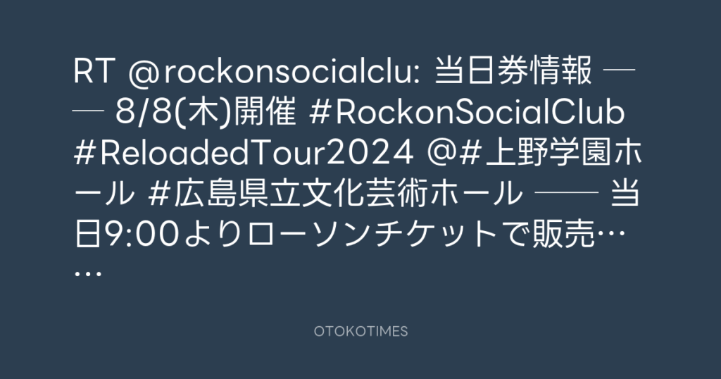 📢当日券情報🎫 🎸── 8/8(木)開催🔥 #RockonSocialClub #ReloadedTour2024 @#上野... -