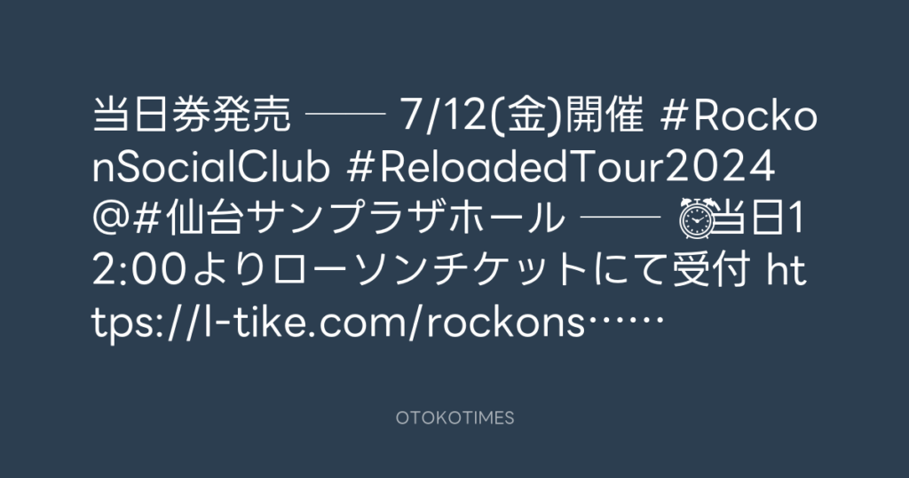 📢当日券発売🎫 🎸7/12(金)開催🔥 #RockonSocialClub #ReloadedTour2024 仙台サン... -