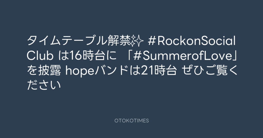 タイムテーブル解禁✨ #RockonSocialClub は16時台に 「#SummerofLove」を披露🎤 h... -
