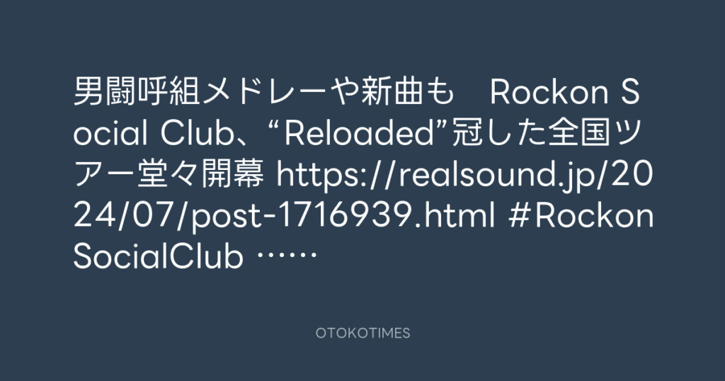 男闘呼組メドレーや新曲も Rockon Social Club、“Reloaded”冠した全国ツアー堂々... -