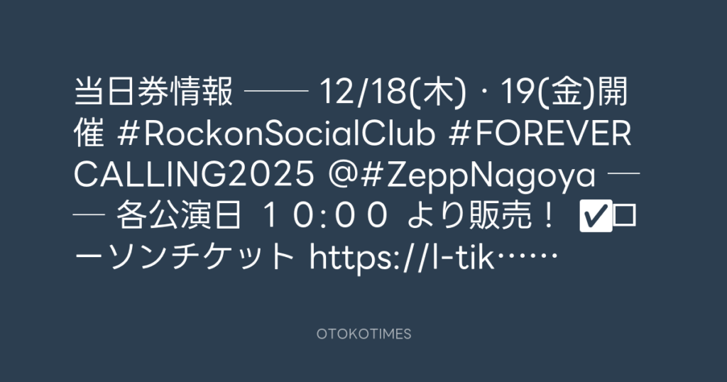 📢当日券情報🎟️ 🎸── 12/18(木)・19(金)開催🔥 #RockonSocialClub #FOREVERCALLING...