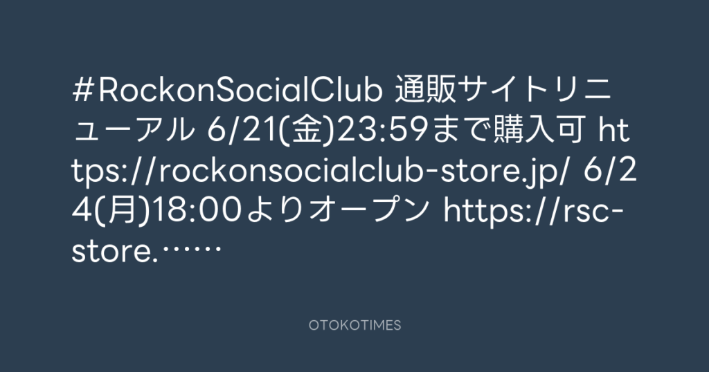 📢#RockonSocialClub 通販サイトリニューアル🆕 📍6/21(金)23:59まで購入可 https:... -