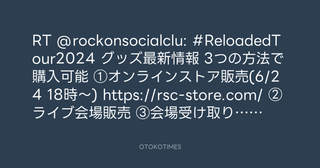 RT @rockonsocialclu: 📢#ReloadedTour2024 グッズ最新情報🛍 📍3つの方法で購入可... -