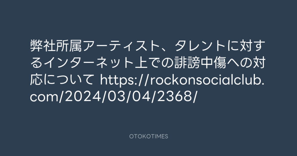 弊社所属アーティスト、タレントに対するインターネット上での誹謗中傷への対応に... -
