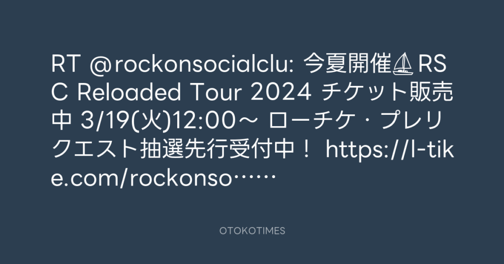 RT @rockonsocialclu: 今夏開催⛵️ RSC Reloaded Tour 2024 チケット販売中🎫 🗓3/1... -