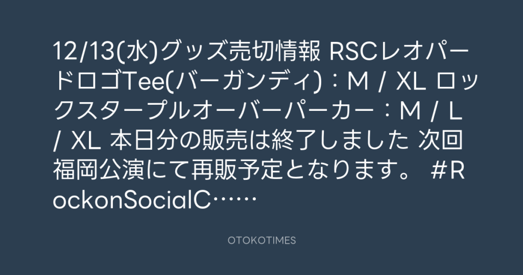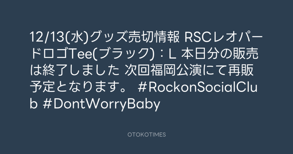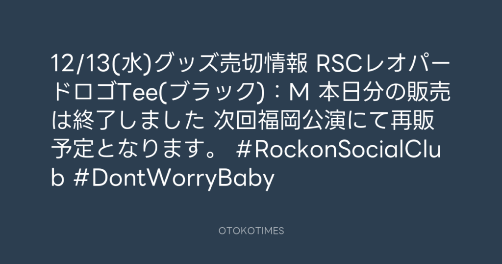 📣12/13(水)グッズ売切情報📣 📍RSCレオパードロゴTee(バーガンディ):L 📍ロック... -
