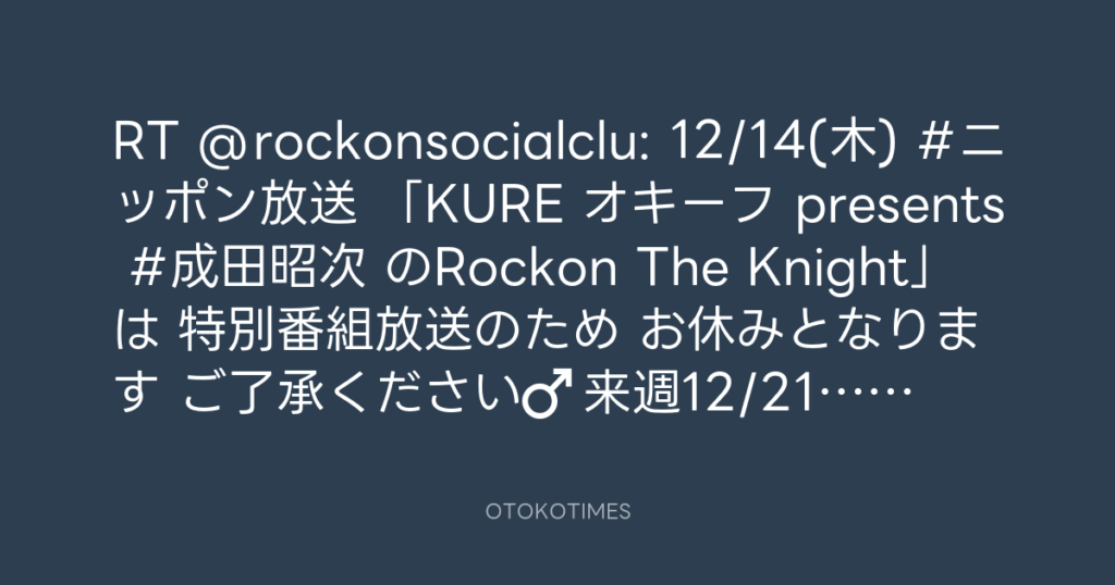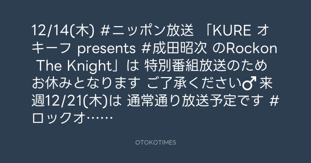 📢12/14(木) #ニッポン放送 「KURE オキーフ presents #成田昭次 のRockon The Kni... -