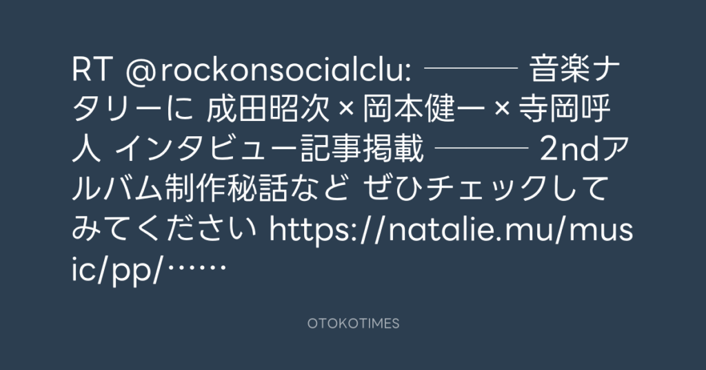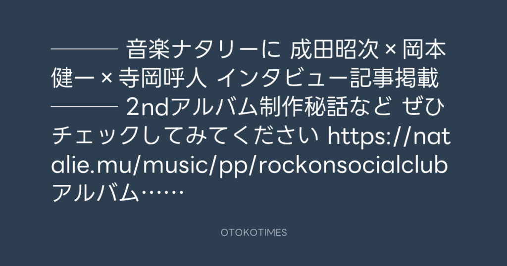 RT @rockonsocialclu: 🎸─── 音楽ナタリーに 成田昭次×岡本健一×寺岡呼人 インタビ... -