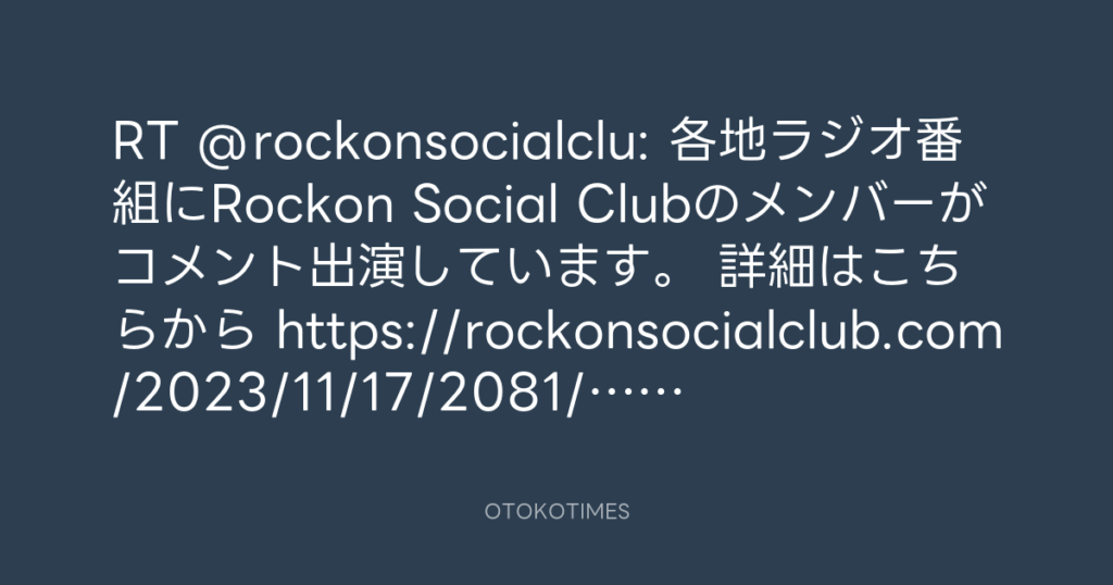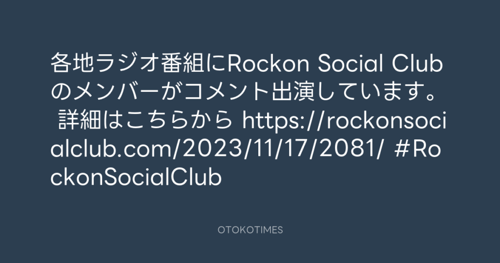 RT @rockonsocialclu: 各地ラジオ番組にRockon Social Clubのメンバーがコメント出... -