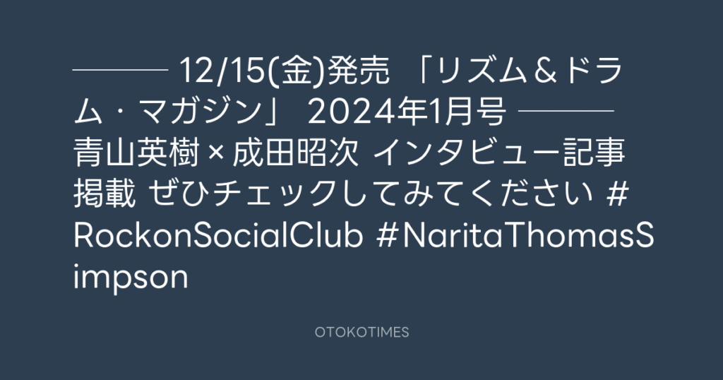 🥁─── 12/15(金)発売 「リズム&ドラム・マガジン」 2024年1月号 ───🥁 青山英樹×... -