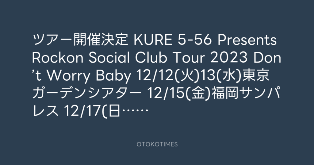 📢ツアー開催決定🔥 KURE 5-56 Presents Rockon Social Club Tour 2023 Don’t Worr... -