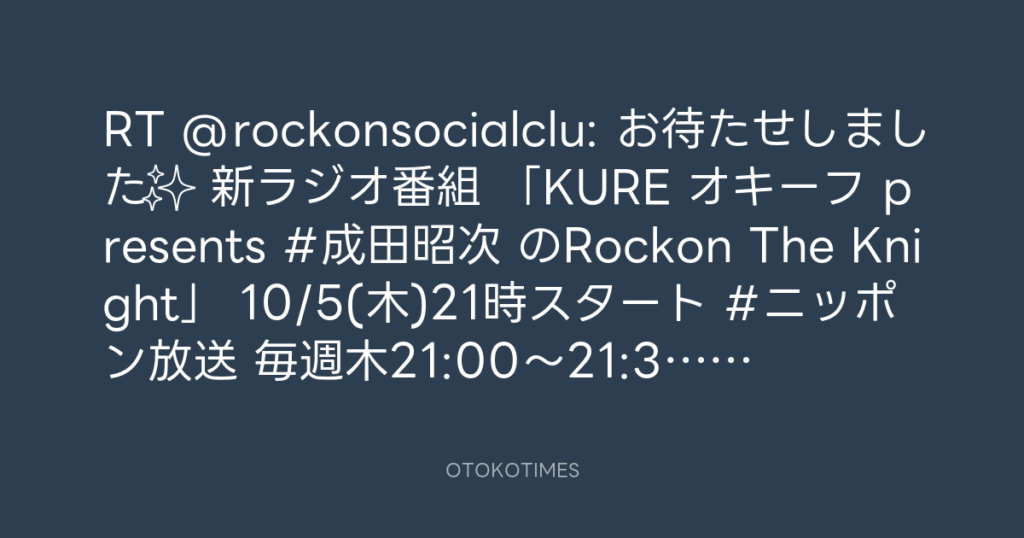 RT @rockonsocialclu: 📢お待たせしました✨ 新ラジオ番組📻 「KURE オキーフ pres...