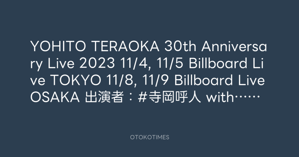 🎸YOHITO TERAOKA🎸 30th Anniversary Live 2023 🗓11/4, 11/5 Billboard Live TOKY... -