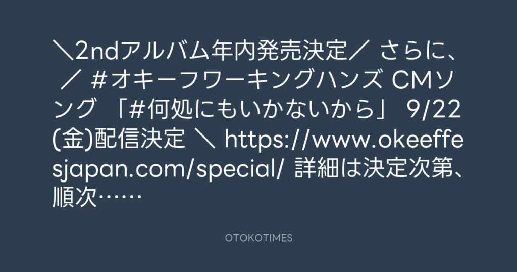 \2ndアルバム年内発売決定🎊/ さらに、 / #オキーフワーキングハンズ CMソング ...