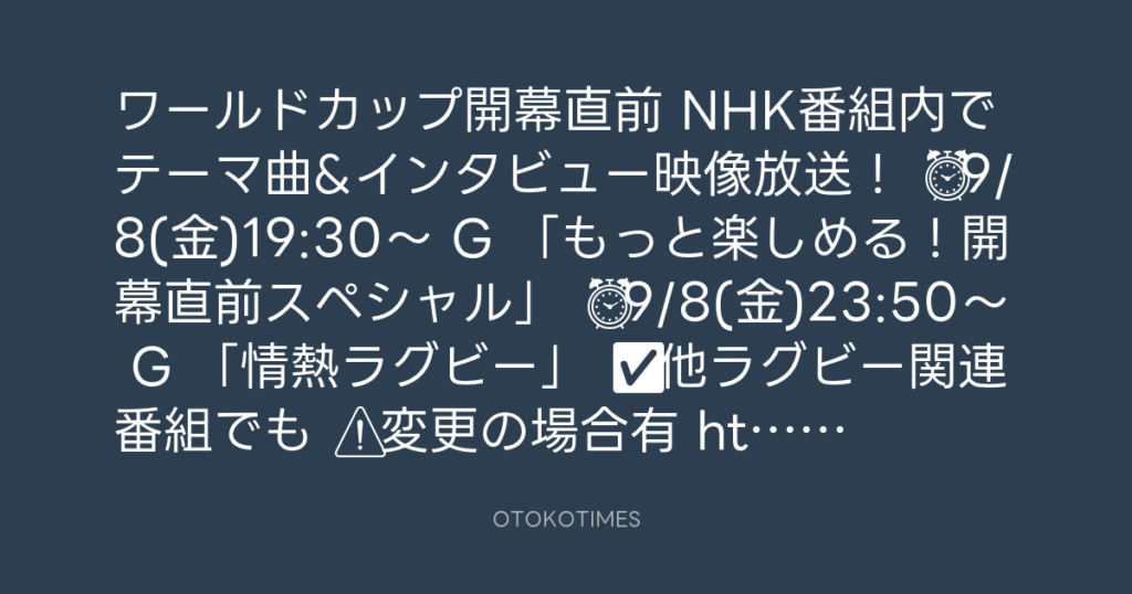 ワールドカップ開幕直前🏉 NHK番組内でテーマ曲&インタビュー映像放送! ⏰9/8... -
