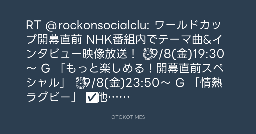 RT @rockonsocialclu: ワールドカップ開幕直前🏉 NHK番組内でテーマ曲&インタ... -
