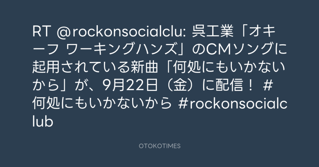 RT @rockonsocialclu: 呉工業「オキーフ ワーキングハンズ」のCMソングに起用され... -