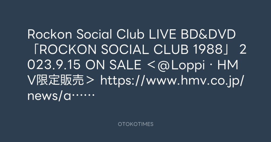 Rockon Social Club Blu-ray & DVD『ROCKON SOCIAL CLUB 1988』発売日変更のお... -