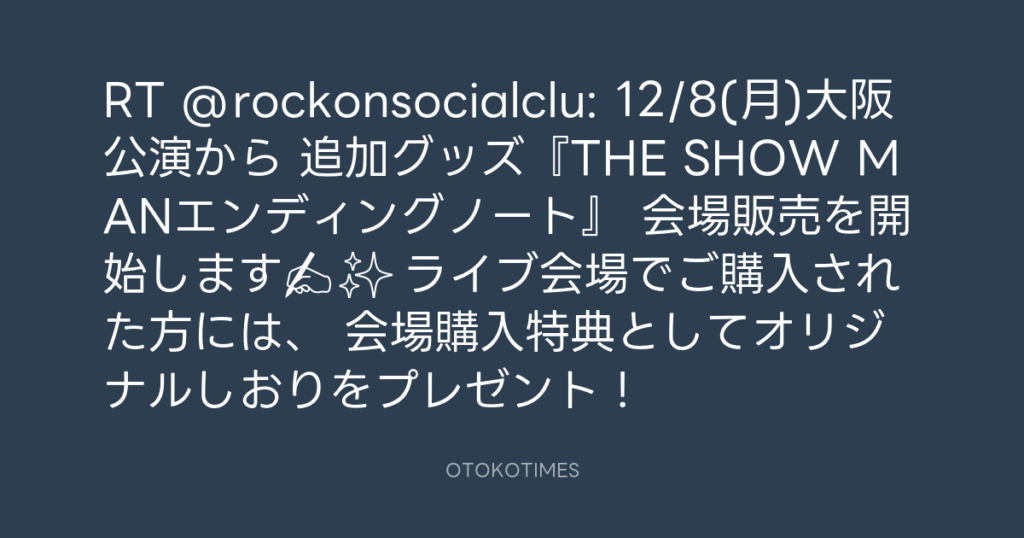 RT @rockonsocialclu: 📢12/8(月)大阪公演から 追加グッズ『THE SHOW MANエンディ... -