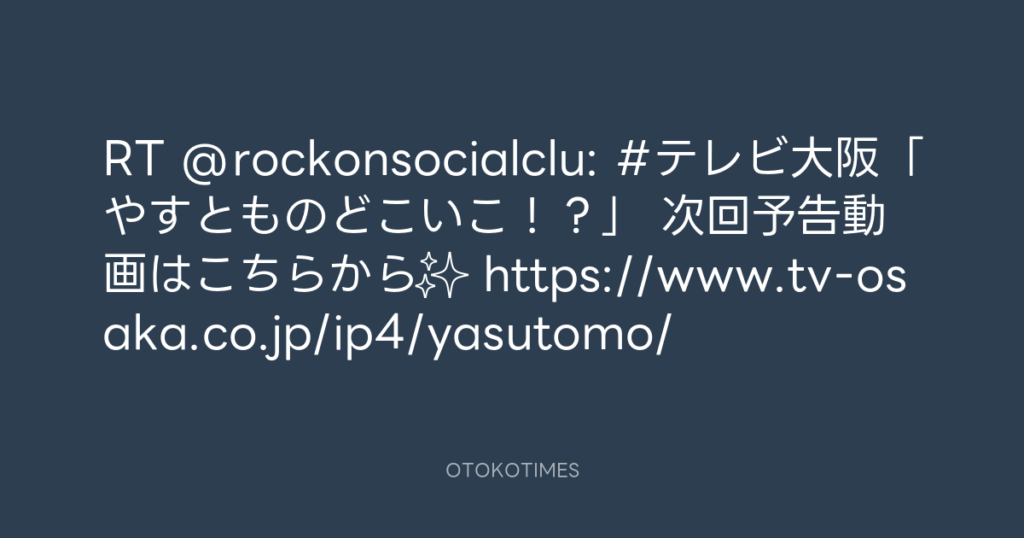 RT @rockonsocialclu: 📺#テレビ大阪「やすとものどこいこ!?」 次回予告動画はこ... -
