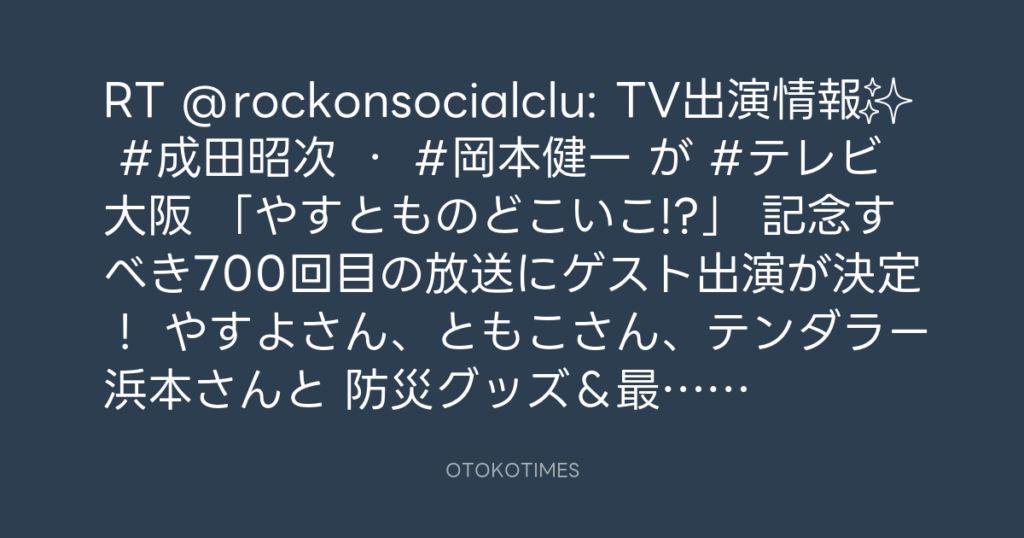 RT @rockonsocialclu: 📺TV出演情報✨ #成田昭次 ・ #岡本健一 が #テレビ大阪 「... -
