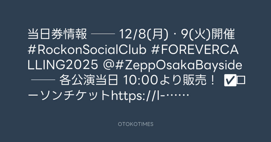 📢当日券情報🎟️ 🎸── 12/8(月)・9(火)開催🔥 #RockonSocialClub #FOREVERCALLING20... -