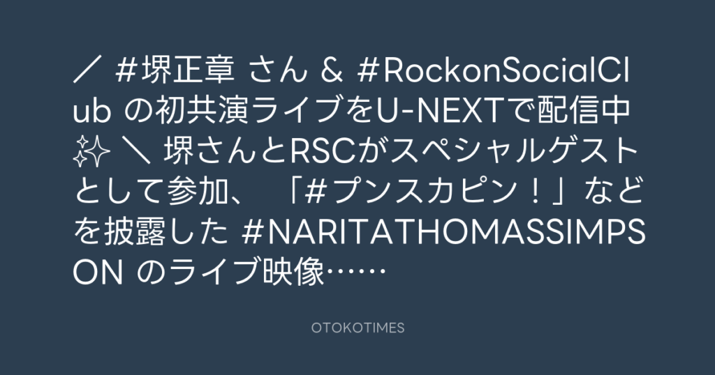 / #堺正章 さん & #RockonSocialClub の初共演ライブをU-NEXTで配信中✨ \ ... -