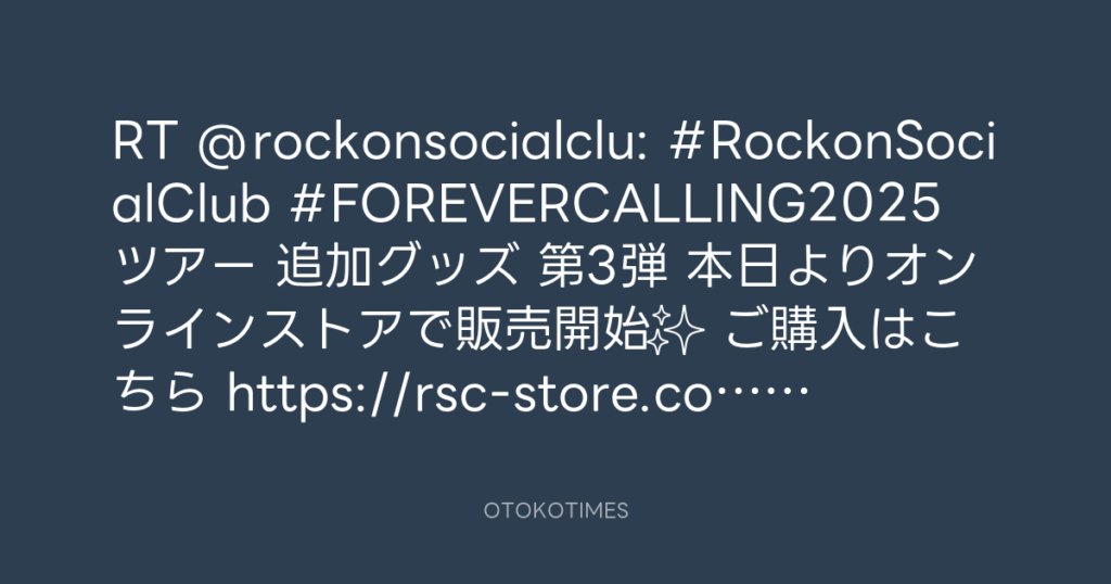 📢#RockonSocialClub #FOREVERCALLING2025 ツアー 追加グッズ 第3弾 本日よりオン... -
