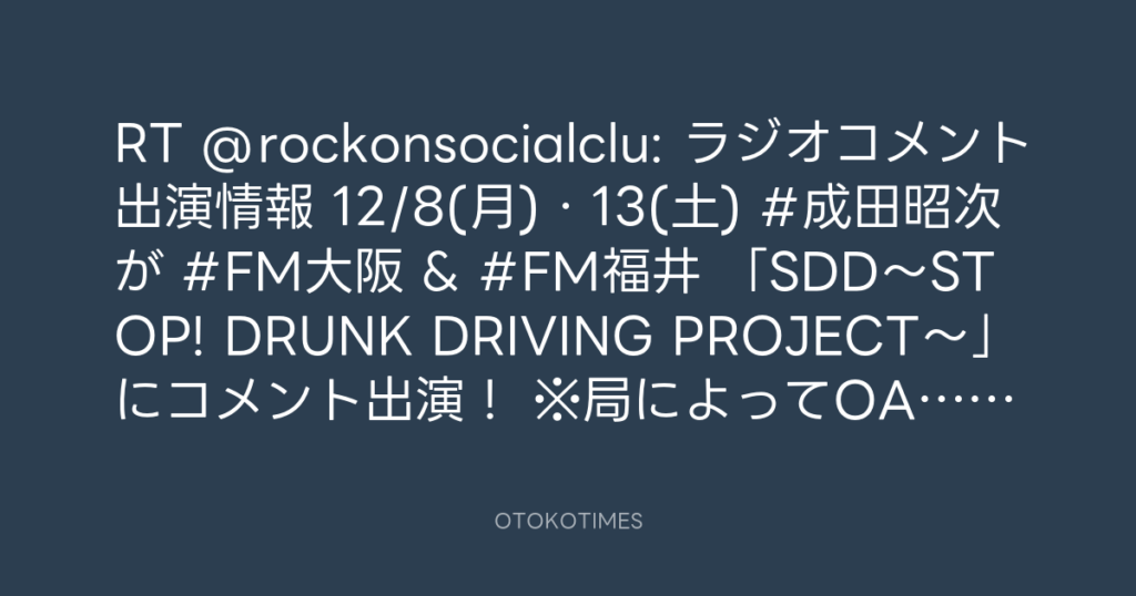 RT @rockonsocialclu: 📢ラジオコメント出演情報📻 12/8(月)・13(土) #成田昭次 が... -