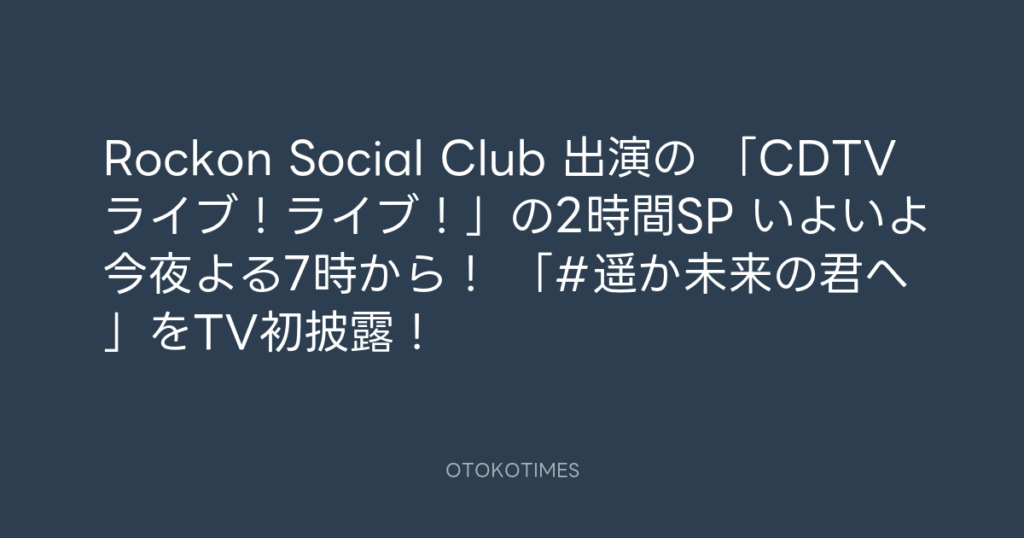 Rockon Social Club 出演の 「CDTVライブ!ライブ!」の2時間SP いよいよ今夜よる7... -