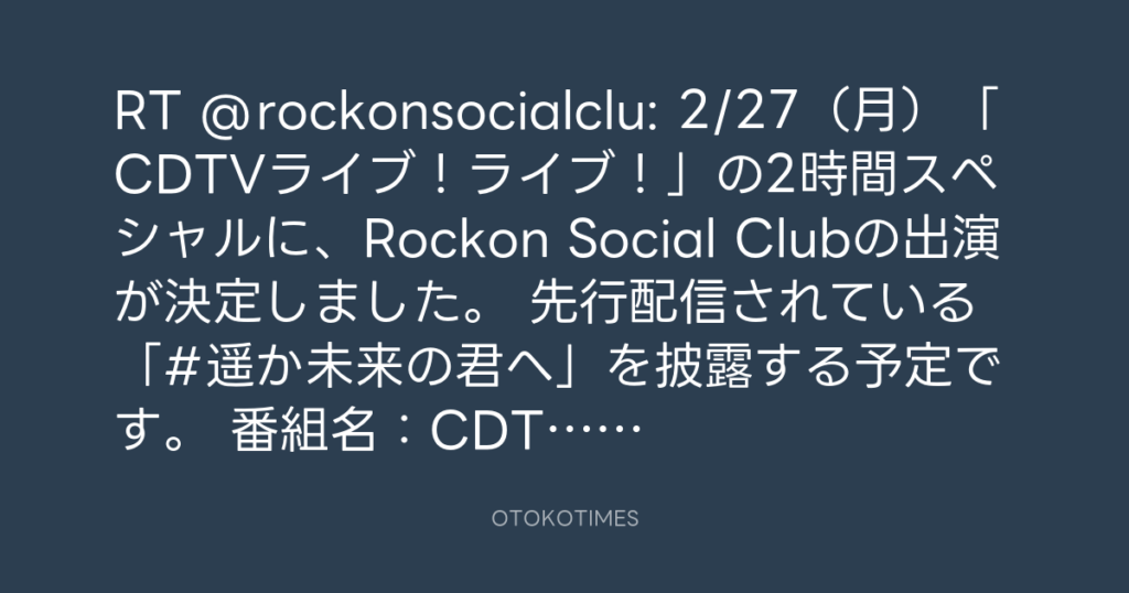 RT @rockonsocialclu: 2/27(月)「CDTVライブ!ライブ!」の2時間スペシャルに、R... -