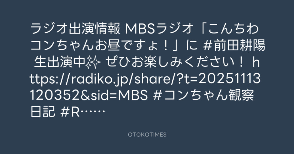 📻ラジオ出演情報📻 MBSラジオ「こんちわコンちゃんお昼ですょ!」に #前田耕陽 生... -