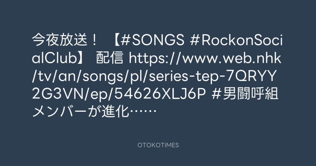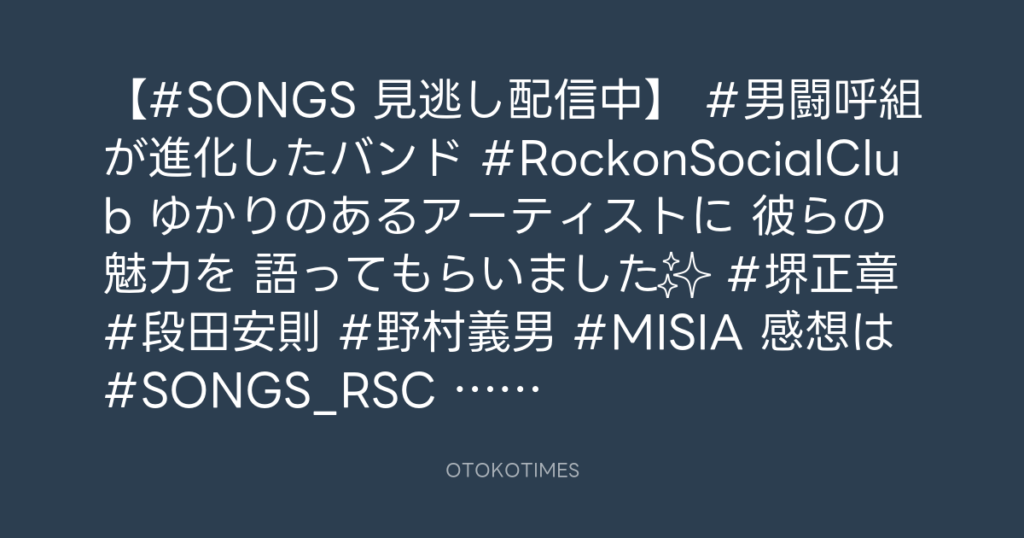 【#SONGS 見逃し配信中📺】 #男闘呼組 が進化したバンド #RockonSocialClub 🎸 ゆ... -