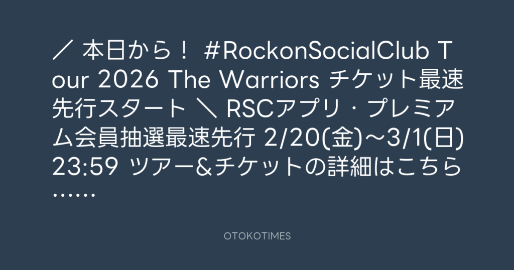 / 📢本日から! #RockonSocialClub Tour 2026 The Warriors チケット最速先行スタ... -