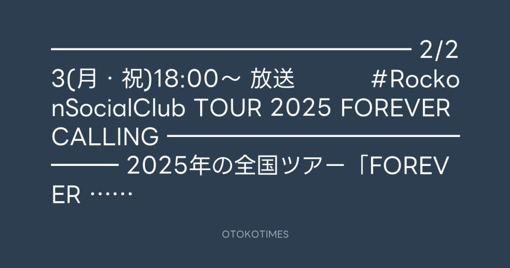 ━━━━━━━━━━━━━━━━ 2/23(月・祝)18:00〜 放送📺 #RockonSocialClub TOUR 2025... -