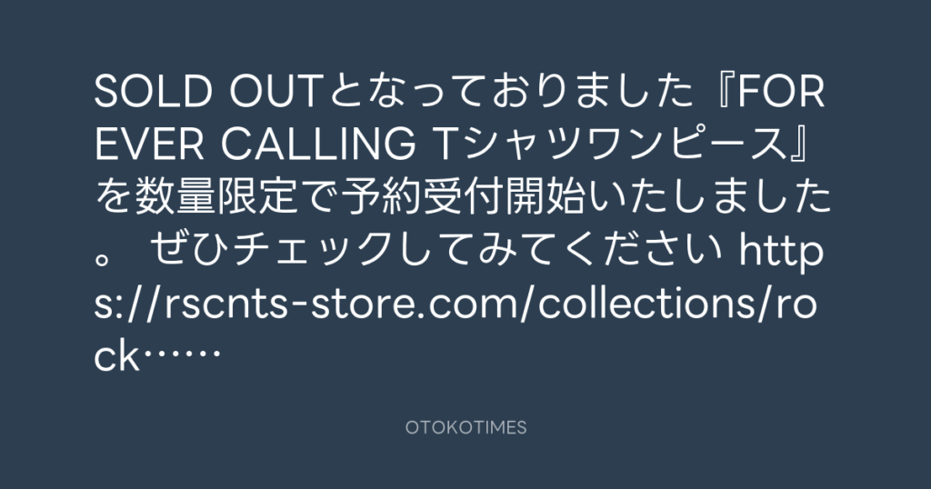 SOLD OUTとなっておりました『FOREVER CALLING Tシャツワンピース』を数量限定で予...