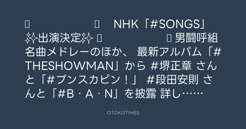 ◤ ◥ NHK「#SONGS」 ✨出演決定✨ ◣ ◢ 男闘呼組名曲... -