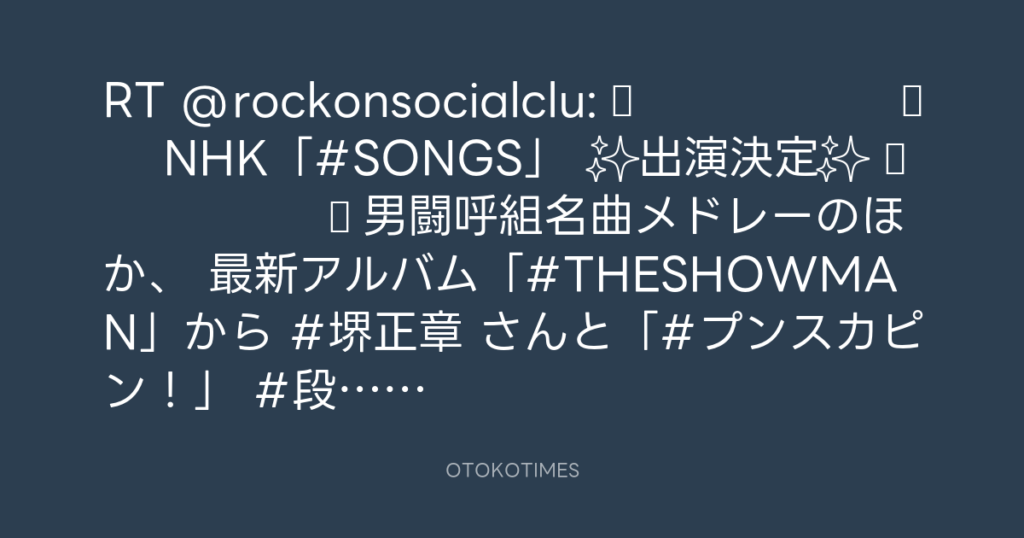RT @rockonsocialclu: ◤ ◥ NHK「#SONGS」 ✨出演決定✨ ◣ ... -