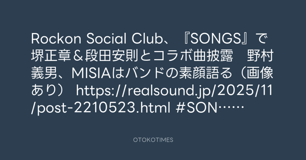Rockon Social ClubがNHK『SONGS』に初登場 男闘呼組時代の代表曲メドレー、堺正... -