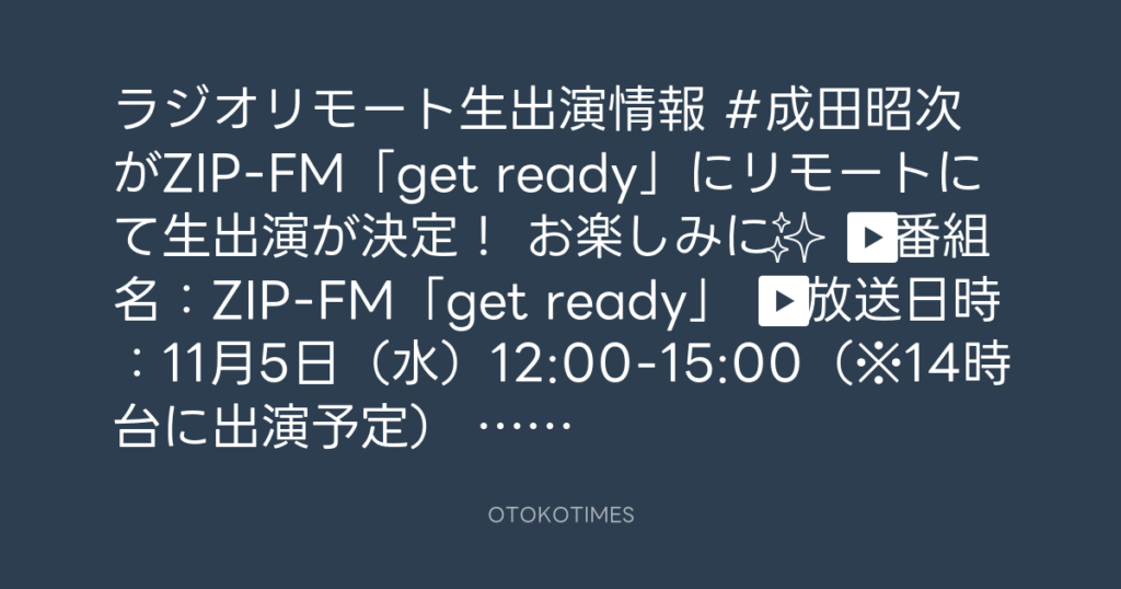 📻ラジオリモート生出演情報📻 #成田昭次 がZIP-FM「get ready」にリモートにて生... -