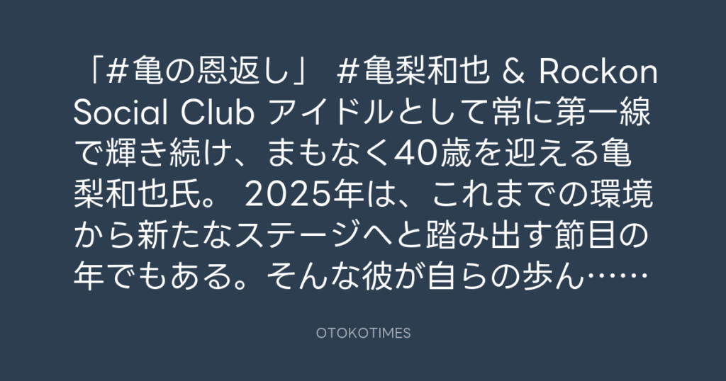 🐢 「#亀の恩返し」 #亀梨和也 & Rockon Social Club アイドルとして常に第一... -