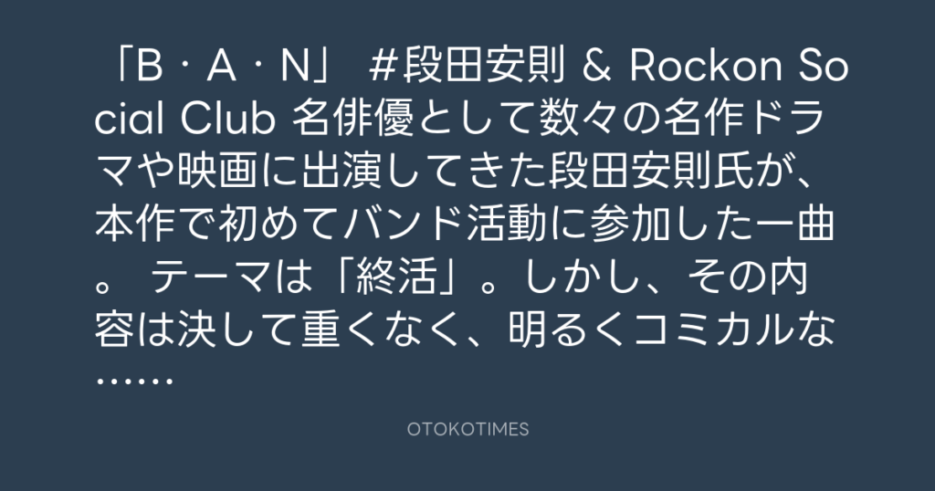 🎪 「B・A・N」 #段田安則 & Rockon Social Club 名俳優として数々の名作ドラ... -