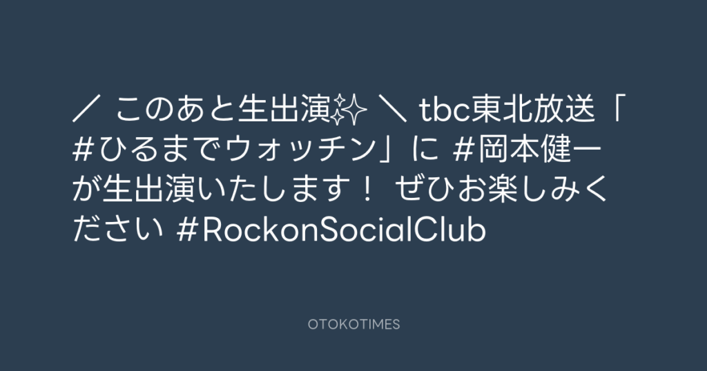 【#RockonSocialClub】 10/20(月)岡本健一がtbc東北放送のテレビ・ラジオ番組に生... -