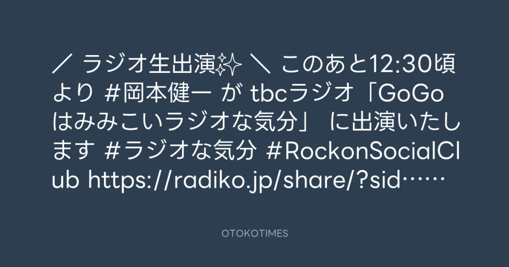 RT @rockonsocialclu: / 📻ラジオ生出演✨ \ このあと12:30頃より #岡本健一 が ... -