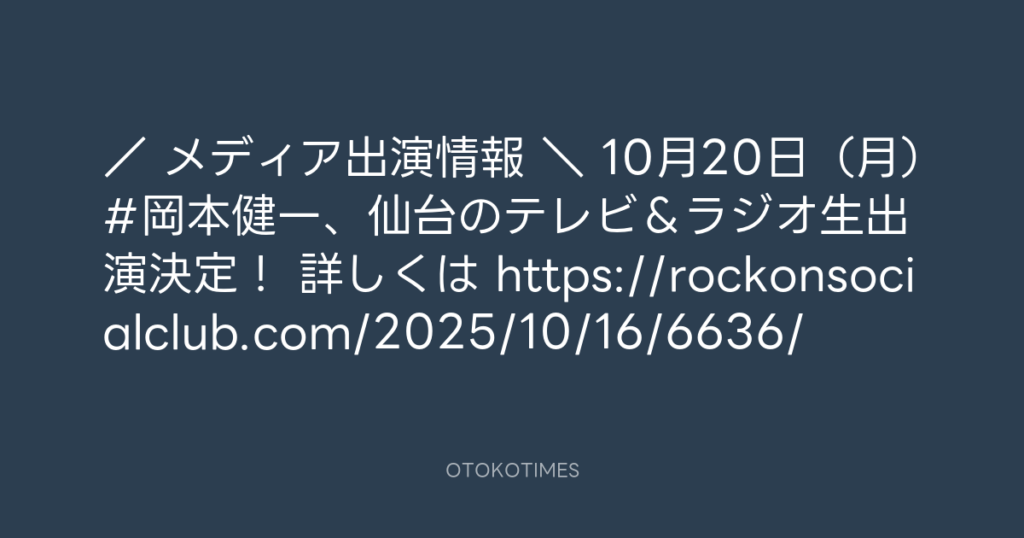 / 📺メディア出演情報📻 \ 10月20日(月)#岡本健一、仙台のテレビ&ラジオ生出... -