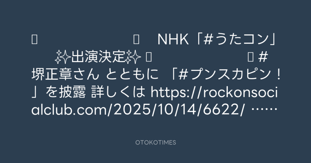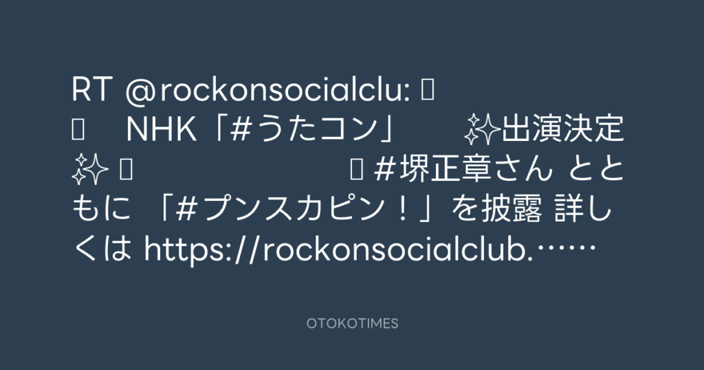 RT @rockonsocialclu: ◤ ◥ NHK「#うたコン」 ✨出演決定✨ ◣... -