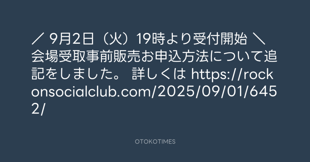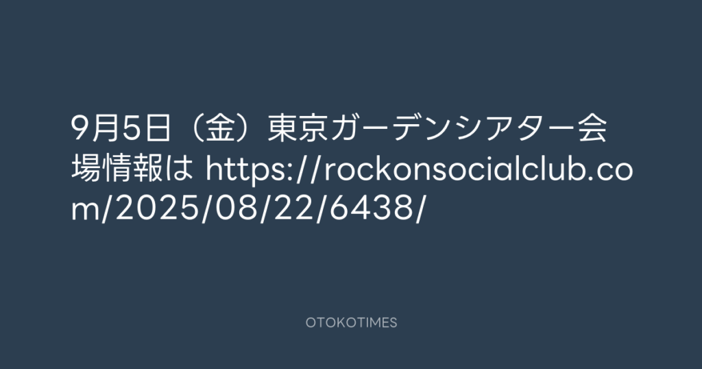 9月5日(金)東京ガーデンシアター会場情報は👇 https://rockonsocialclub.com/202... -