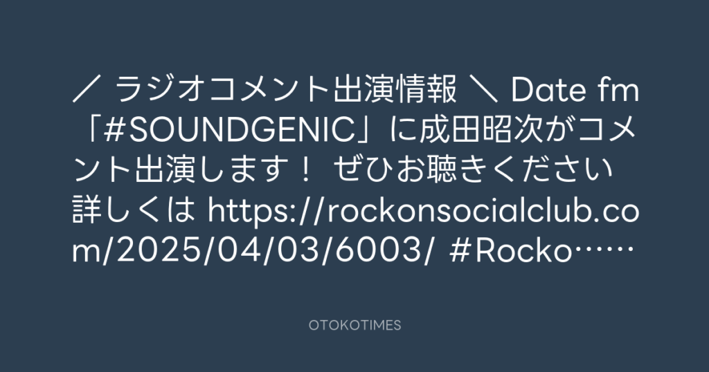 / 📢ラジオコメント出演情報 \ Date fm「#SOUNDGENIC」に成田昭次がコメント出演... -