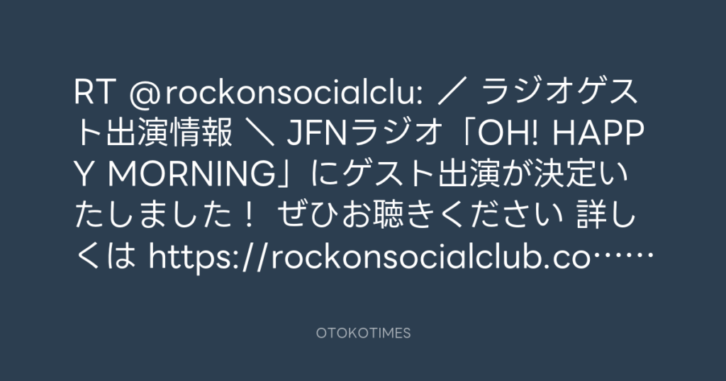 RT @rockonsocialclu: / 📢ラジオゲスト出演情報 \ JFNラジオ「OH! HAPPY MORNIN... -